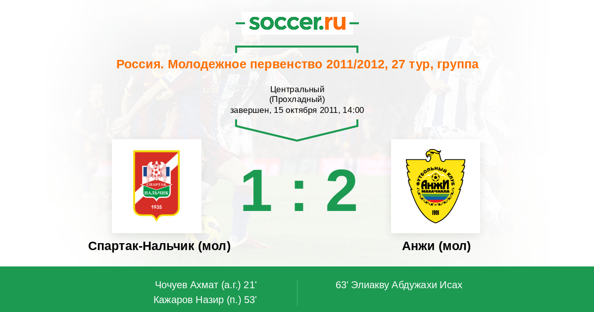 Протокол матча Спартак-Нальчик (мол) против Анжи (мол)