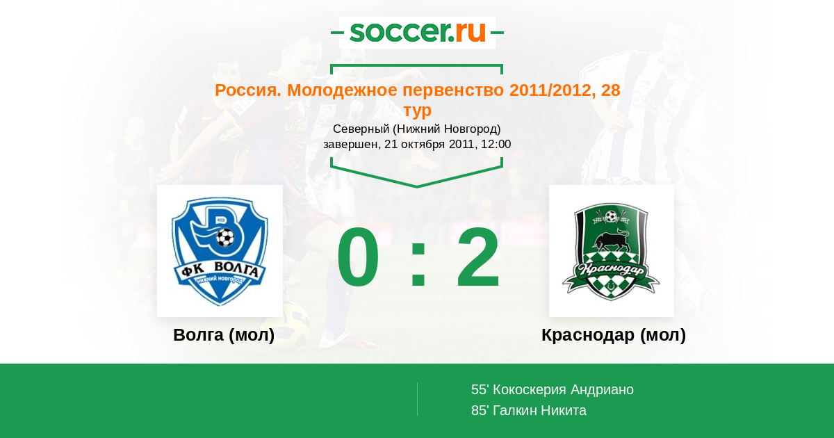 Протокол матча Волга (мол) против Краснодар (мол)