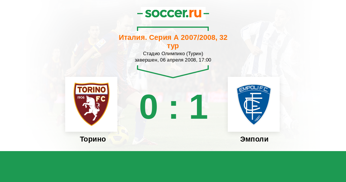 Италия. Серия А 22.04.2007 Эмполи Логотип футбольный клуб Эмполи 0:0 Логотип футбольный клуб Торино (Турин) Торино