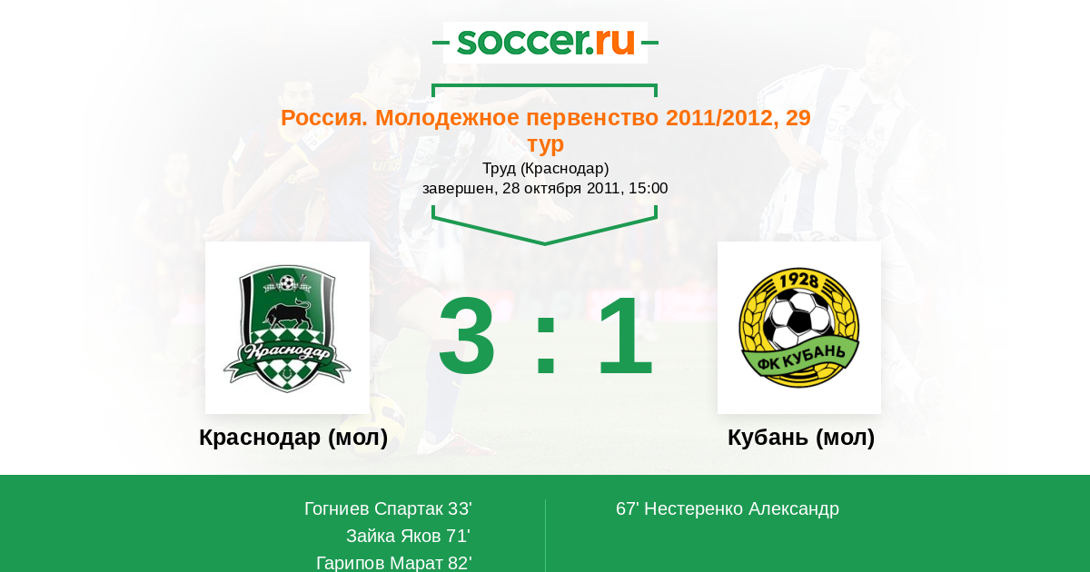 Протокол матча Краснодар (мол) против Кубань (мол)