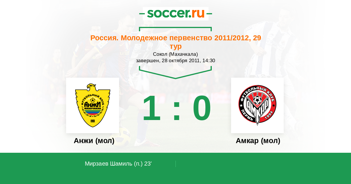 Протокол матча Анжи (мол) против Амкар (мол)