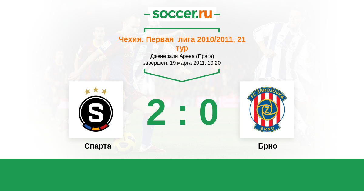 Чехия. Первая Лига 28.03.2010 Спарта Логотип футбольный клуб Спарта (Прага) 3:0 Логотип футбольный клуб Брно Брно