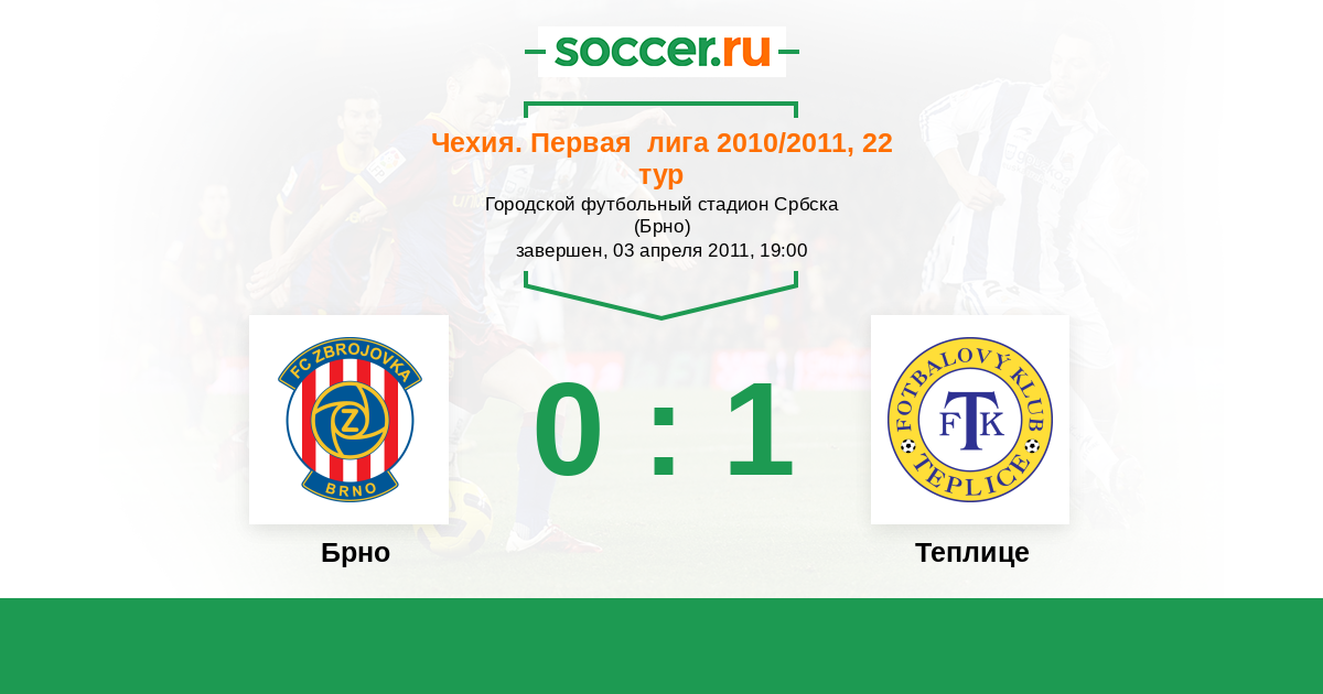 Чехия. Первая Лига 12.09.2010 Теплице Логотип футбольный клуб Теплице 1:2 Логотип футбольный клуб Брно Брно