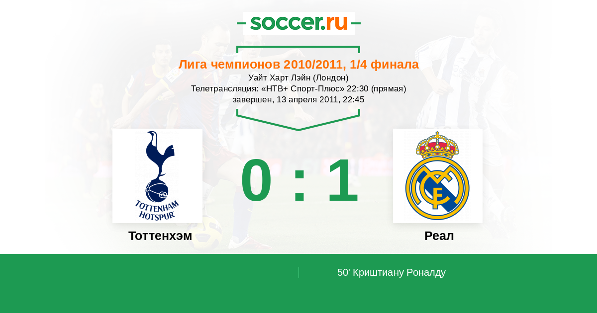 Протокол матча Тоттенхэм против Реал