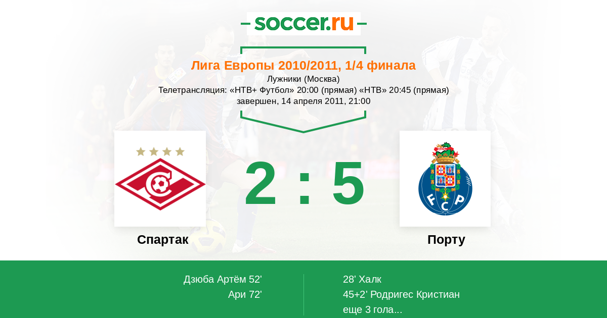 Протокол матча Спартак против Порту