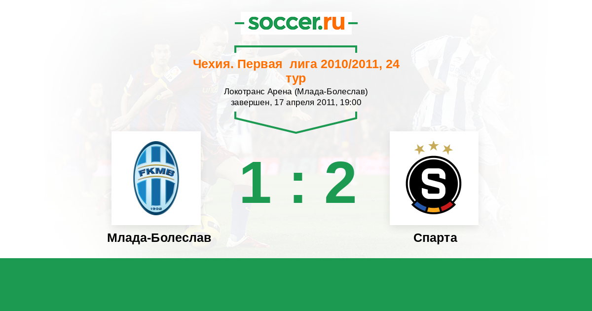 Чехия. Кубок 28.03.2012 Спарта Логотип футбольный клуб Спарта (Прага) 1:0 Логотип футбольный клуб Млада-Болеслав Млада-Болеслав