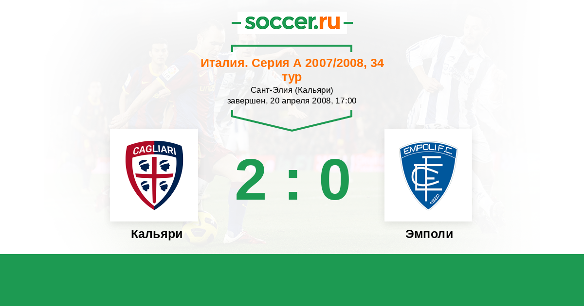Италия. Серия А 14.04.2007 Кальяри Логотип футбольный клуб Кальяри 0:0 Логотип футбольный клуб Эмполи Эмполи