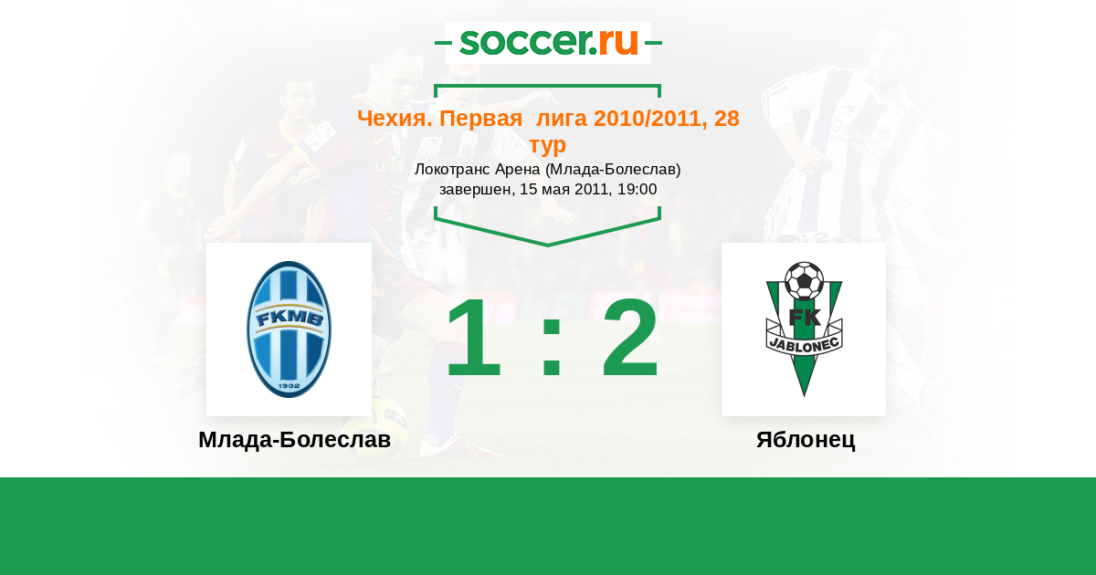 Чехия. Первая Лига 12.05.2012 Млада-Болеслав Логотип футбольный клуб Млада-Болеслав 3:0 Логотип футбольный клуб Яблонец (Яблонец-над-Нисоу) Яблонец