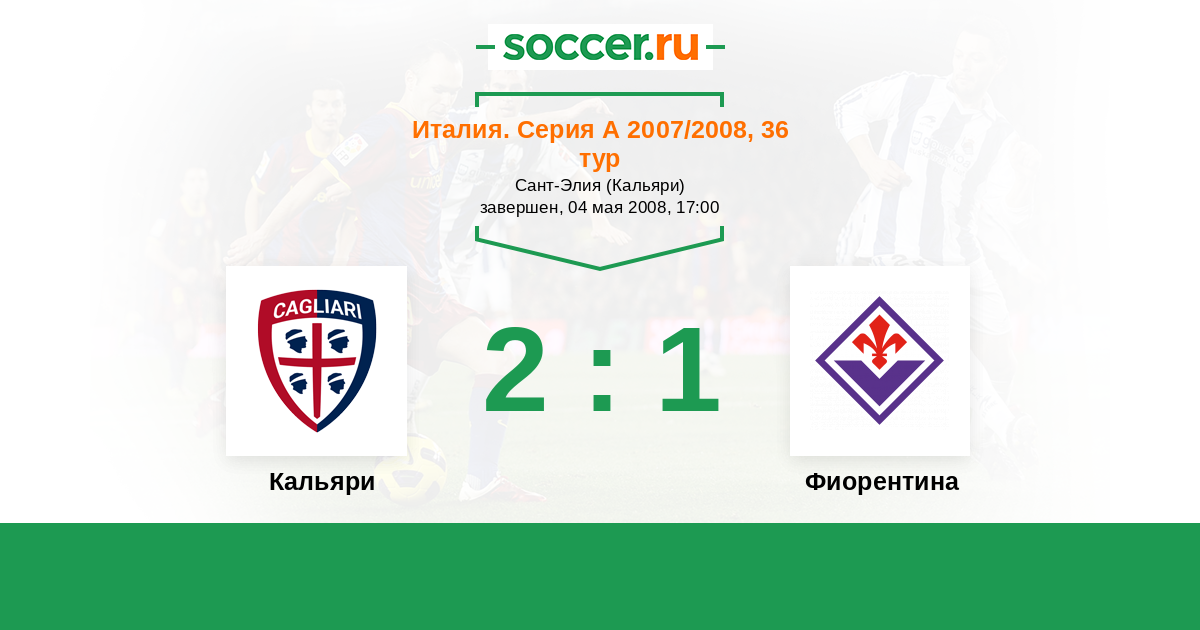 Италия. Серия А 13.05.2007 Фиорентина Логотип футбольный клуб Фиорентина (Флоренция) 1:0 Логотип футбольный клуб Кальяри Кальяри