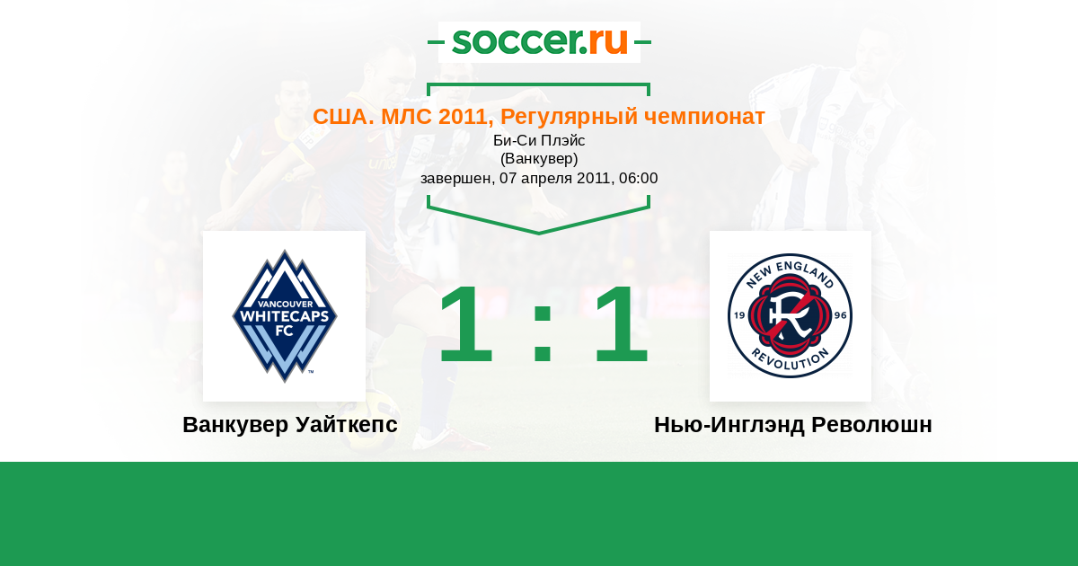 История матча Ванкувер Уайткепс против Нью-Инглэнд Революшн