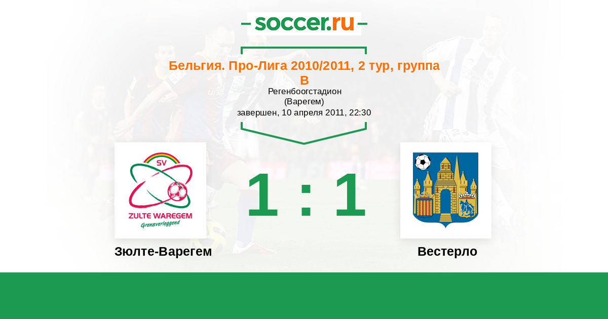 Бельгия. Про-Лига 01.10.2011 Вестерло Логотип футбольный клуб Вестерло 1:1 Логотип футбольный клуб Зюлте-Варегем Зюлте-Варегем