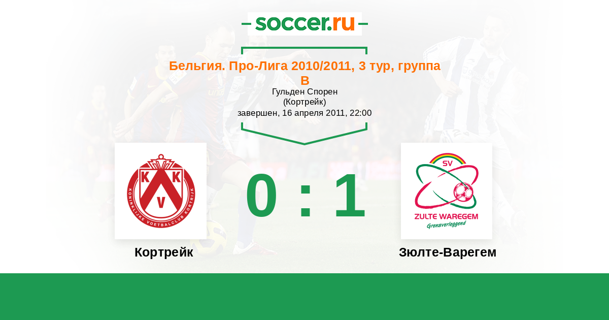 Бельгия. Про-Лига 19.03.2011 Кортрейк Логотип футбольный клуб Кортрейк 2:2 Логотип футбольный клуб Зюлте-Варегем Зюлте-Варегем