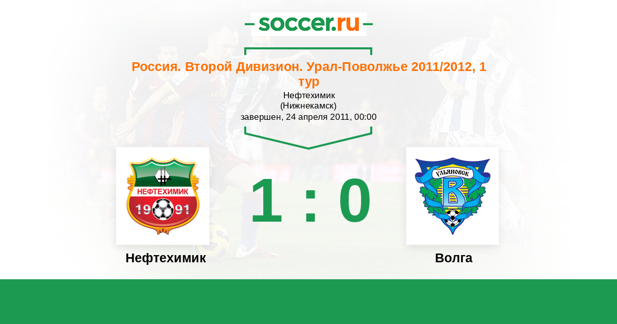 Россия. Вторая лига. Группа 4 11.10.2011 Нефтехимик Логотип футбольный клуб Нефтехимик (Нижнекамск) 1:1 Логотип футбольный клуб Волга (Ульяновск) Волга