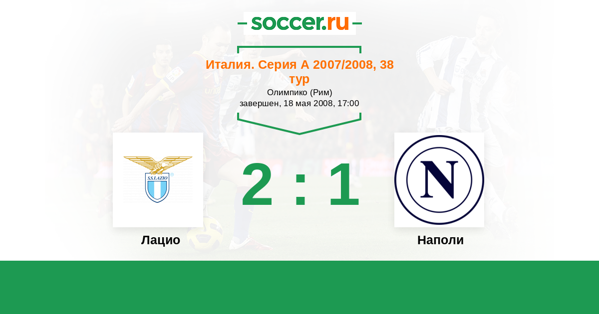 Италия. Кубок 19.12.2007 Лацио Логотип футбольный клуб Лацио (Рим) 2:1 Логотип футбольный клуб Наполи (Неаполь) Наполи