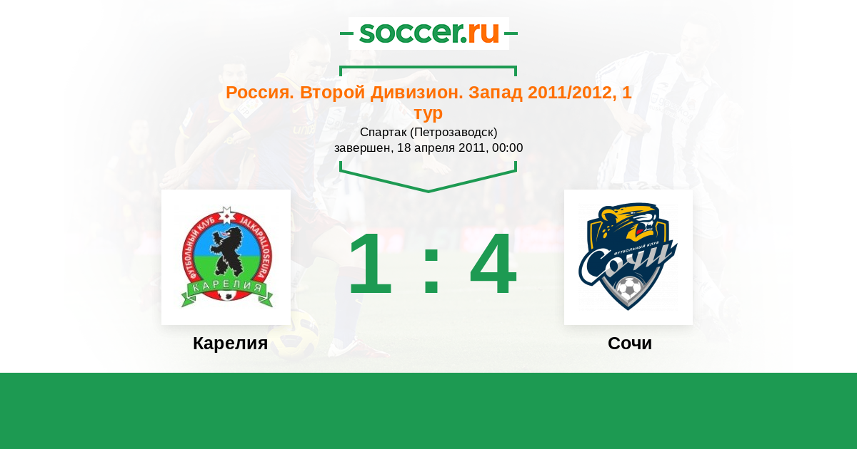 Россия. Вторая лига. Группа 2 10.10.2011 Петротрест Логотип футбольный клуб Петротрест (Сочи) 2:1 Логотип футбольный клуб Карелия (Петрозаводск) Карелия