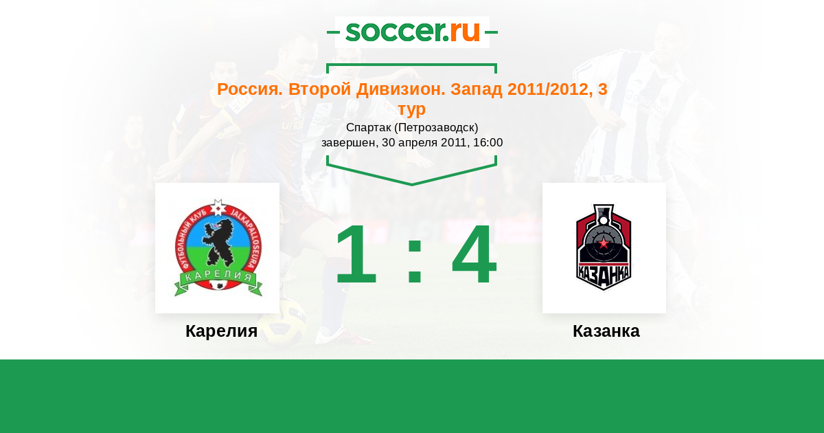Россия. Вторая лига. Группа 2 30.07.2011 Локомотив-2 Логотип футбольный клуб Локомотив-2 (Москва) 2:2 Логотип футбольный клуб Карелия (Петрозаводск) Карелия