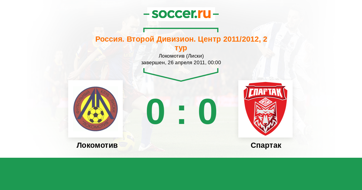 Россия. Вторая лига. Группа 3 31.07.2012 Спартак Логотип футбольный клуб Спартак (Тамбов) 0:0 Логотип футбольный клуб Локомотив (Лиски) Локомотив