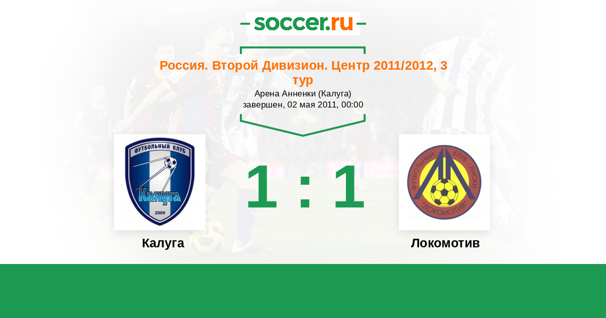 Россия. Вторая лига. Группа 3 20.07.2011 Локомотив Логотип футбольный клуб Локомотив (Лиски) 0:1 Логотип футбольный клуб Калуга Калуга
