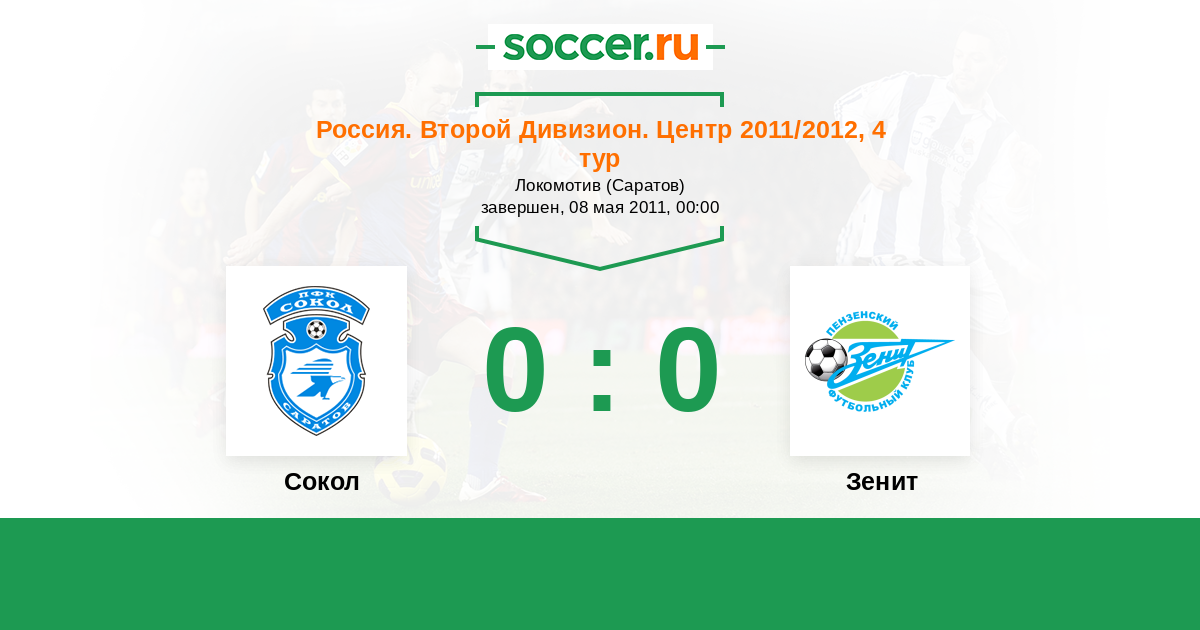 Россия. Вторая лига. Группа 3 09.09.2012 Сокол Логотип футбольный клуб Сокол (Саратов) 1:1 Логотип футбольный клуб Зенит (Пенза) Зенит