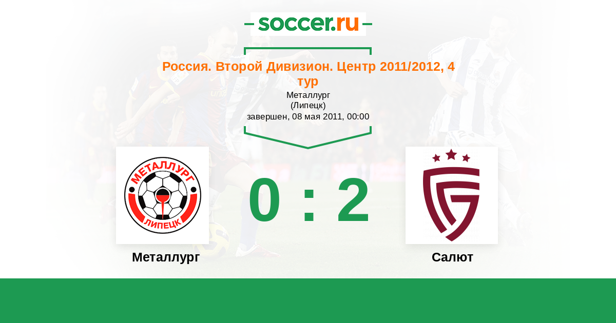 Россия. Вторая лига. Группа 3 05.08.2011 Салют Логотип футбольный клуб Салют (Белгород) 3:0 Логотип футбольный клуб Металлург (Липецк) Металлург