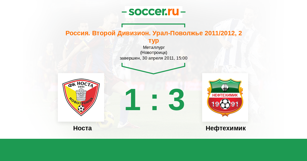 Россия. Вторая лига. Группа 4 17.10.2011 Носта Логотип футбольный клуб Носта (Новотроицк) 0:1 Логотип футбольный клуб Нефтехимик (Нижнекамск) Нефтехимик