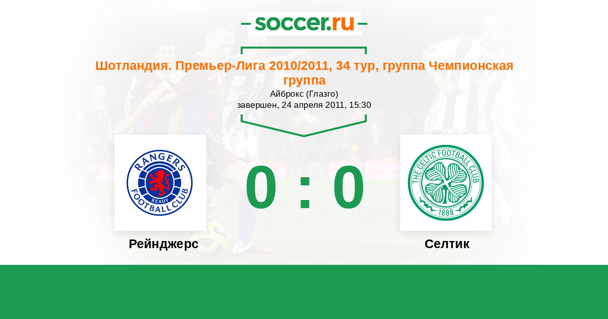 Шотландия. Премьер-Лига 29.04.2012 Селтик Логотип футбольный клуб Селтик (Глазго) 3:0 Логотип футбольный клуб Рейнджерс (Глазго) Рейнджерс