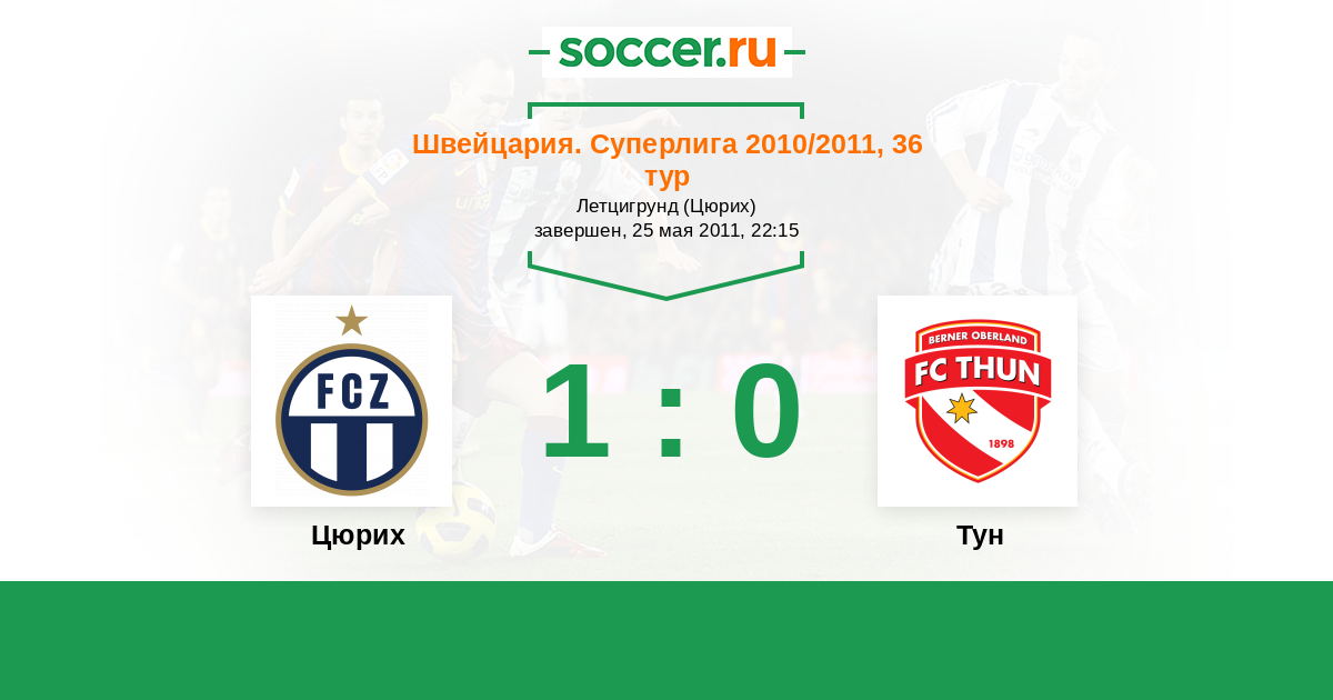 Швейцария. Суперлига 03.04.2011 Тун Логотип футбольный клуб Тун 2:3 Логотип футбольный клуб Цюрих Цюрих