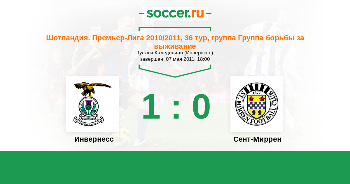 Шотландия. Премьер-Лига 05.05.2012 Сент-Миррен Логотип футбольный клуб Сент-Миррен (Пейсли) 0:1 Логотип футбольный клуб Инвернесс Инвернесс