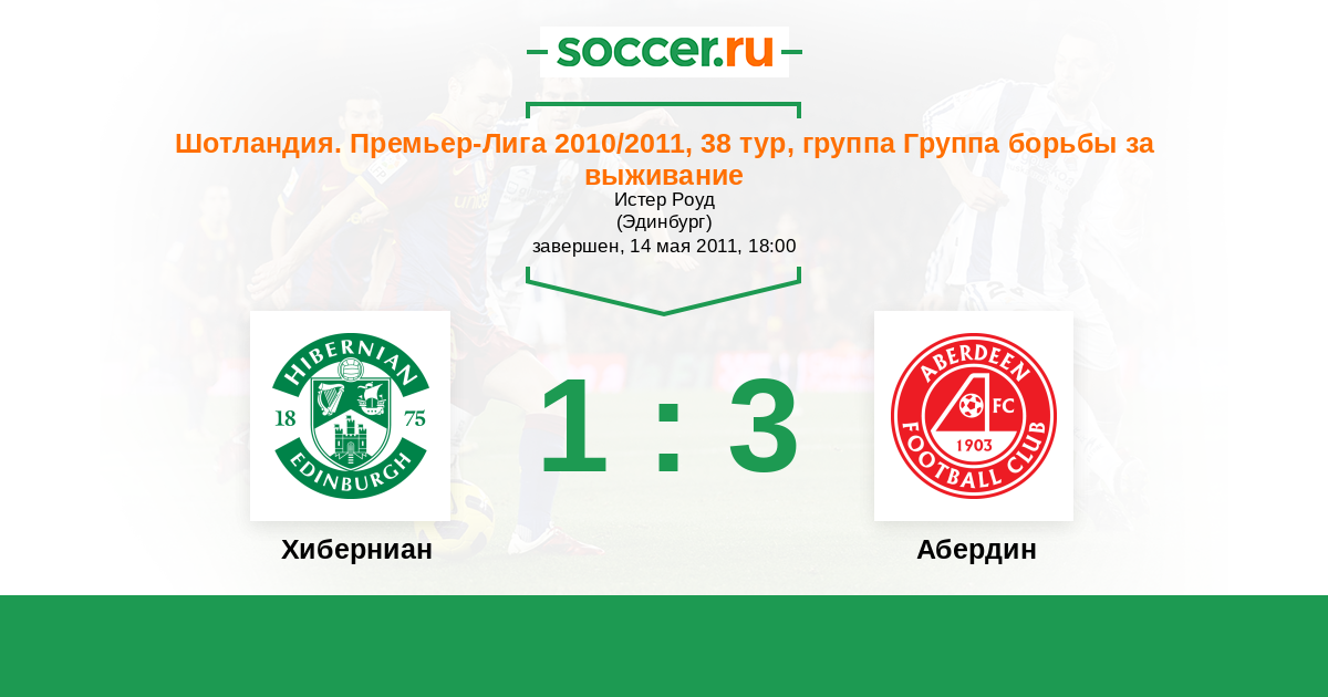 Шотландия. Премьер-Лига 26.12.2010 Хиберниан Логотип футбольный клуб Хиберниан (Эдинбург) 1:2 Логотип футбольный клуб Абердин Абердин