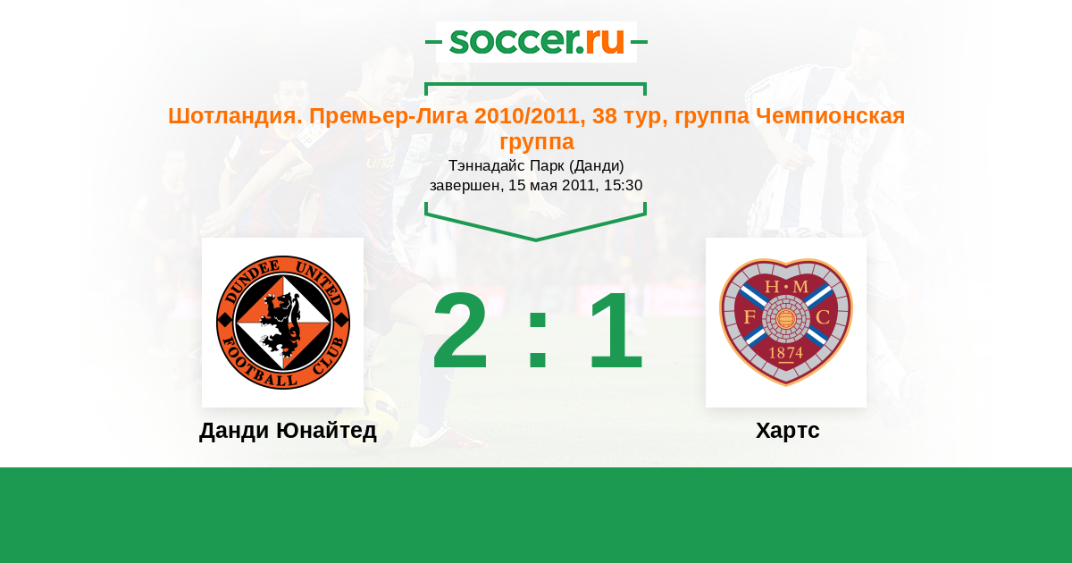Шотландия. Премьер-Лига 16.03.2011 Данди Юнайтед Логотип футбольный клуб Данди Юнайтед 2:0 Логотип футбольный клуб Хартс (Эдинбург) Хартс