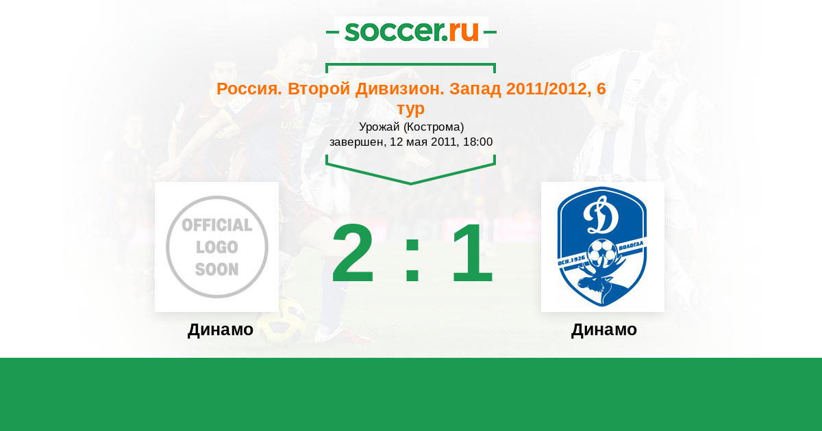 Россия. Вторая лига. Группа 2 12.05.2012 Волочанин-Ратмир Логотип футбольный клуб Волочанин-Ратмир (Вышний Волочек) 0:2 Логотип футбольный клуб Динамо (Кострома) Динамо