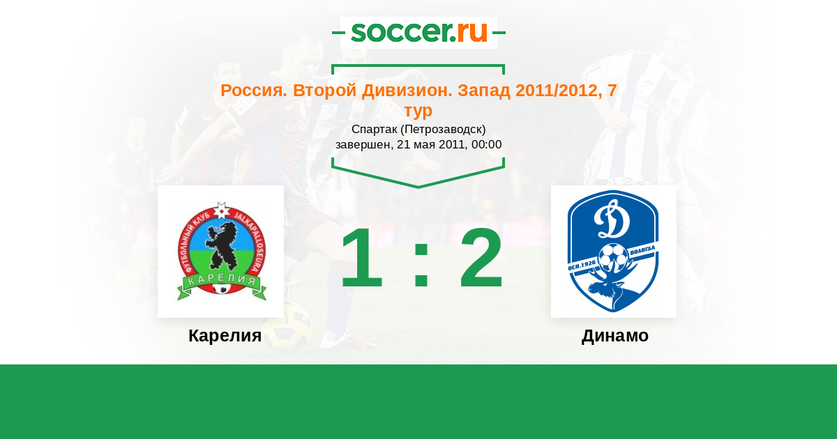 Россия. Вторая лига. Группа 2 19.08.2011 Динамо Вологда Логотип футбольный клуб Динамо Вологда 1:2 Логотип футбольный клуб Карелия (Петрозаводск) Карелия