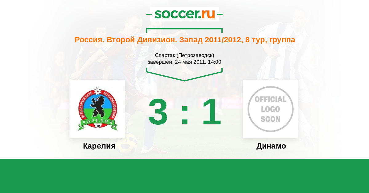 Россия. Вторая лига. Группа 2 25.04.2012 Карелия Логотип футбольный клуб Карелия (Петрозаводск) 1:0 Логотип футбольный клуб Динамо (Кострома) Динамо