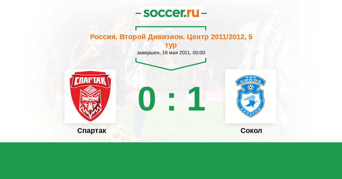 Россия. Вторая лига. Группа 3 11.08.2011 Сокол Логотип футбольный клуб Сокол (Саратов) 5:1 Логотип футбольный клуб Спартак (Тамбов) Спартак