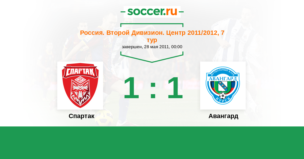 Россия. Вторая лига. Группа 3 29.04.2012 Спартак Логотип футбольный клуб Спартак (Тамбов) 3:3 Логотип футбольный клуб Авангард (Курск) Авангард