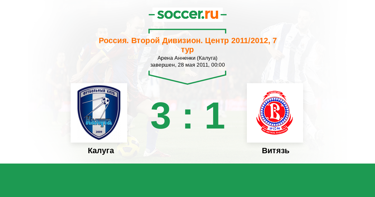 Россия. Вторая лига. Группа 3 29.04.2012 Калуга Логотип футбольный клуб Калуга 3:1 Логотип футбольный клуб Витязь (Подольск) Витязь