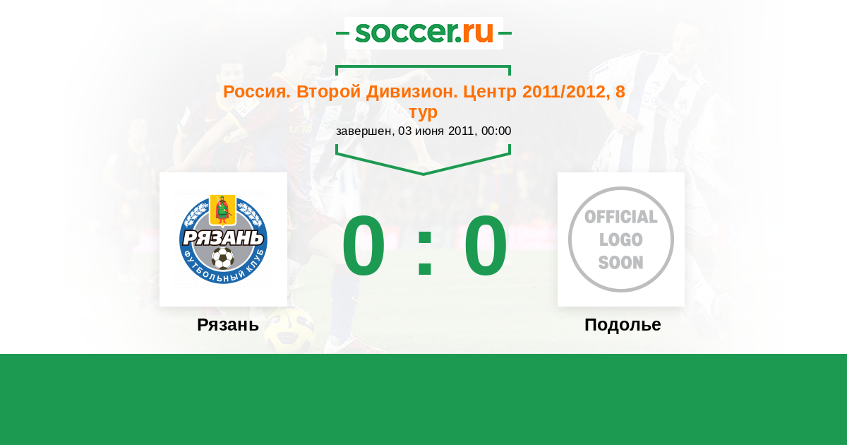 Россия. Вторая лига. Группа 3 10.04.2015 Подолье Логотип футбольный клуб Подолье (Подольский район) 0:1 Логотип футбольный клуб Рязань Рязань
