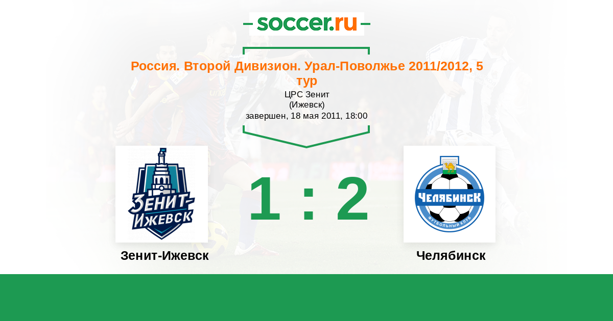 Россия. Вторая лига. Группа 4 18.04.2012 Зенит-Ижевск Логотип футбольный клуб Зенит-Ижевск 0:0 Логотип футбольный клуб Челябинск Челябинск