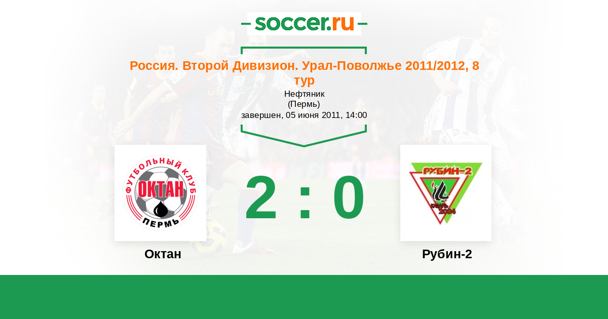 Россия. Вторая лига. Группа 4 28.08.2011 Рубин-2 Логотип футбольный клуб Рубин-2 (Казань) 1:2 Логотип футбольный клуб Октан (Пермь) Октан