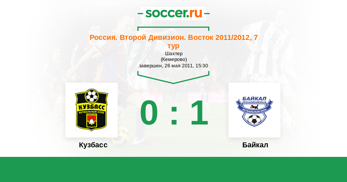 Россия. 2-й дивизион. Восток 18.08.2011 Байкал Логотип футбольный клуб Байкал (Иркутск) 1:0 Логотип футбольный клуб Кузбасс (Кемерово) Кузбасс