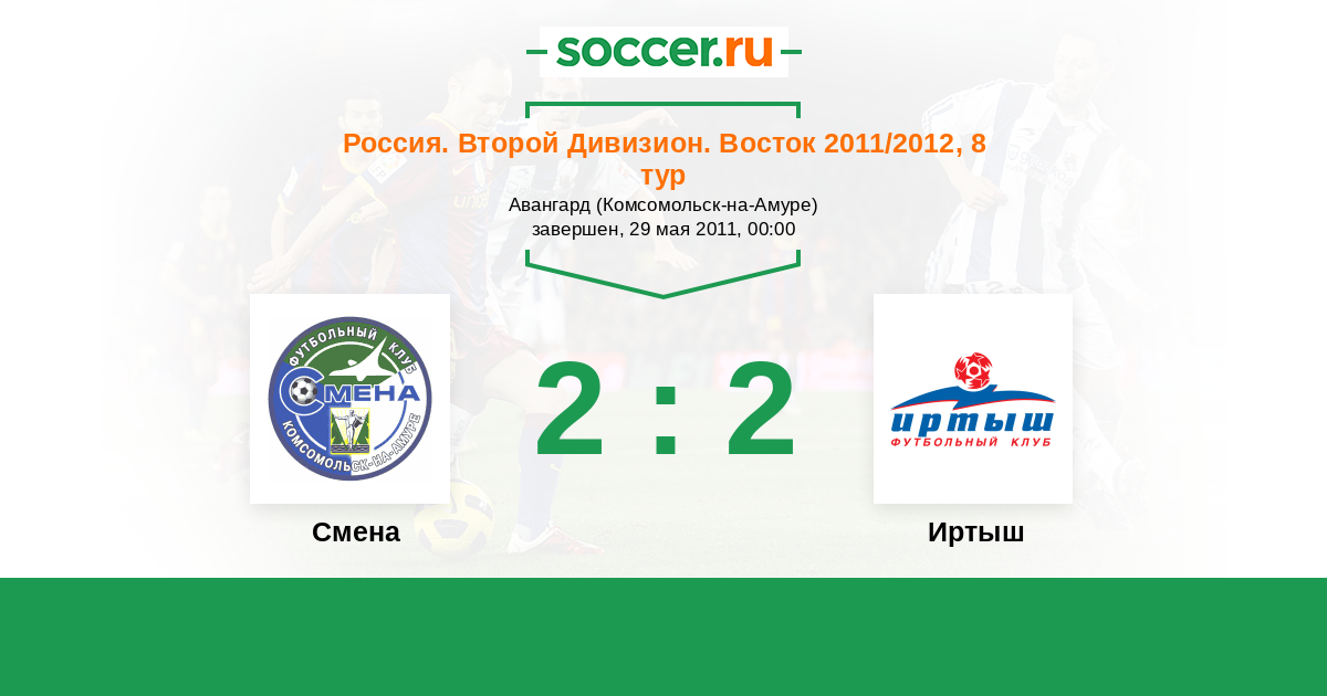 Россия. 2-й дивизион. Восток 02.05.2012 Смена Логотип футбольный клуб Смена (Комсомольск-на-Амуре) 3:3 Логотип футбольный клуб Иртыш (Омск) Иртыш