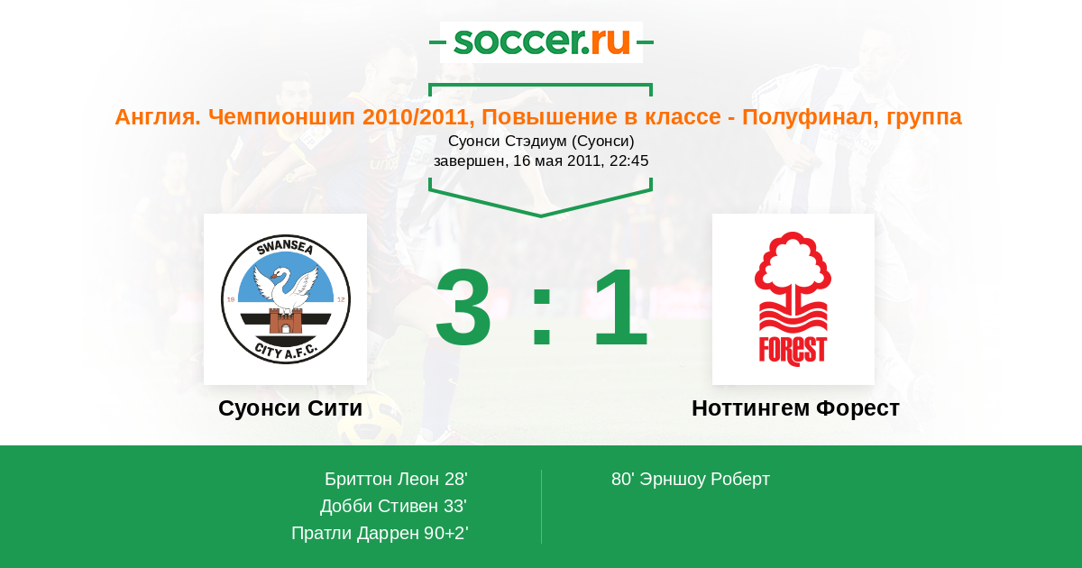 Протокол матча Суонси Сити против Ноттингем Форест