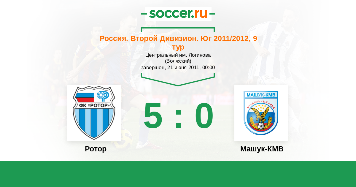 Россия. Вторая лига. Группа 1 23.10.2011 Машук-КМВ Логотип футбольный клуб Машук-КМВ (Пятигорск) 0:1 Логотип футбольный клуб Ротор (Волгоград) Ротор