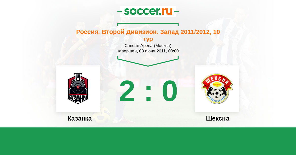 Россия. Вторая лига. Группа 2 04.06.2012 Шексна Логотип футбольный клуб Шексна (Череповец) 2:0 Логотип футбольный клуб Карелия (Петрозаводск) Карелия