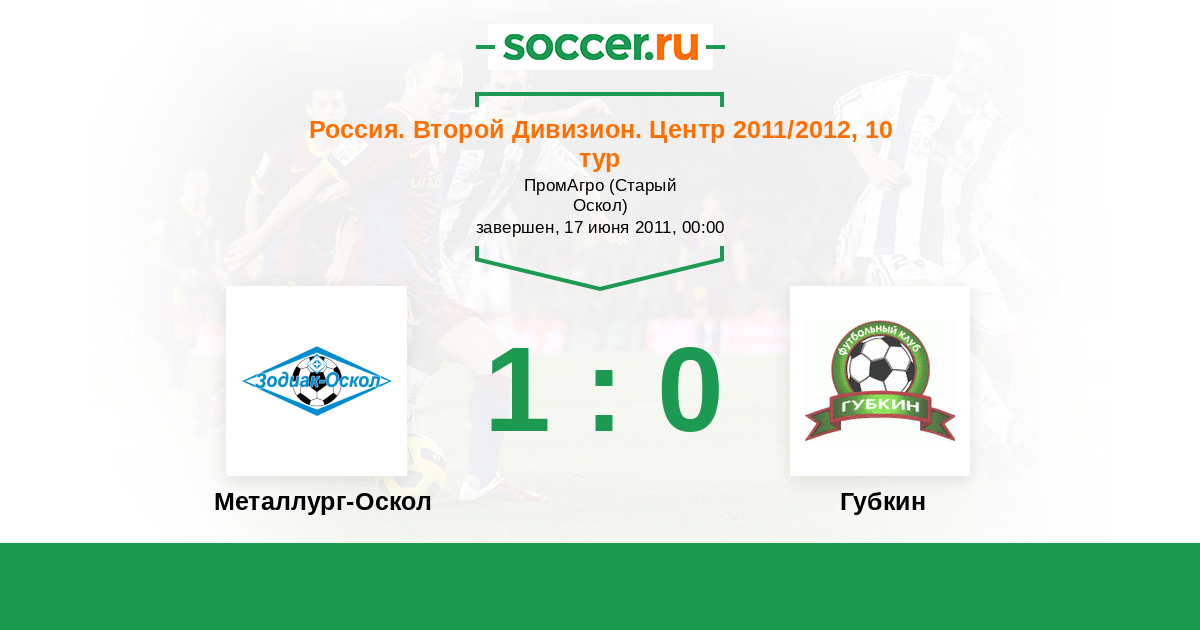 Россия. Вторая лига. Группа 3 10.09.2011 Губкин Логотип футбольный клуб Губкин 2:3 Логотип футбольный клуб Металлург-Оскол (Старый Оскол) Металлург-Оскол