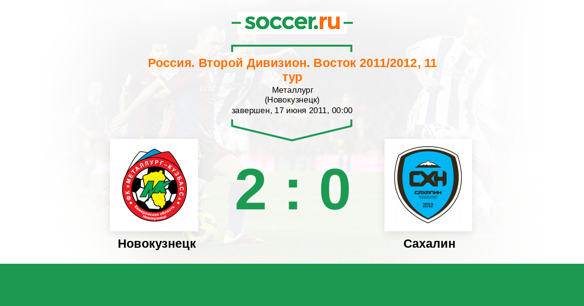 Россия. 2-й дивизион. Восток 24.07.2011 Сахалин Логотип футбольный клуб Сахалин (Южно-Сахалинск) 2:0 Логотип футбольный клуб Металлург-Кузбасс (Новокузнецк) Металлург-Кузбасс