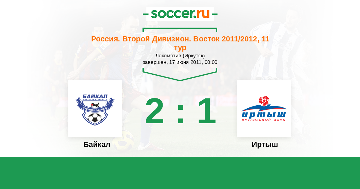 Россия. 2-й дивизион. Восток 22.09.2012 Байкал Логотип футбольный клуб Байкал (Иркутск) 4:1 Логотип футбольный клуб Иртыш (Омск) Иртыш