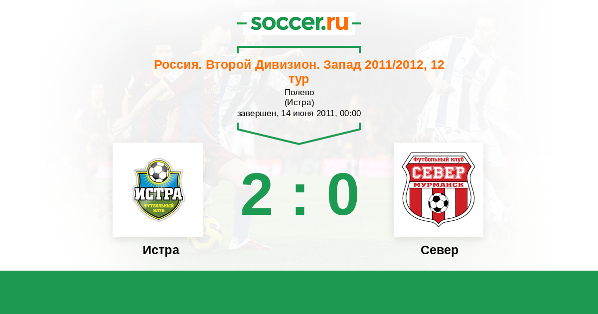 Россия. Вторая лига. Группа 2 11.09.2011 Север Логотип футбольный клуб Север (Мурманск) 1:1 Логотип футбольный клуб Истра Истра