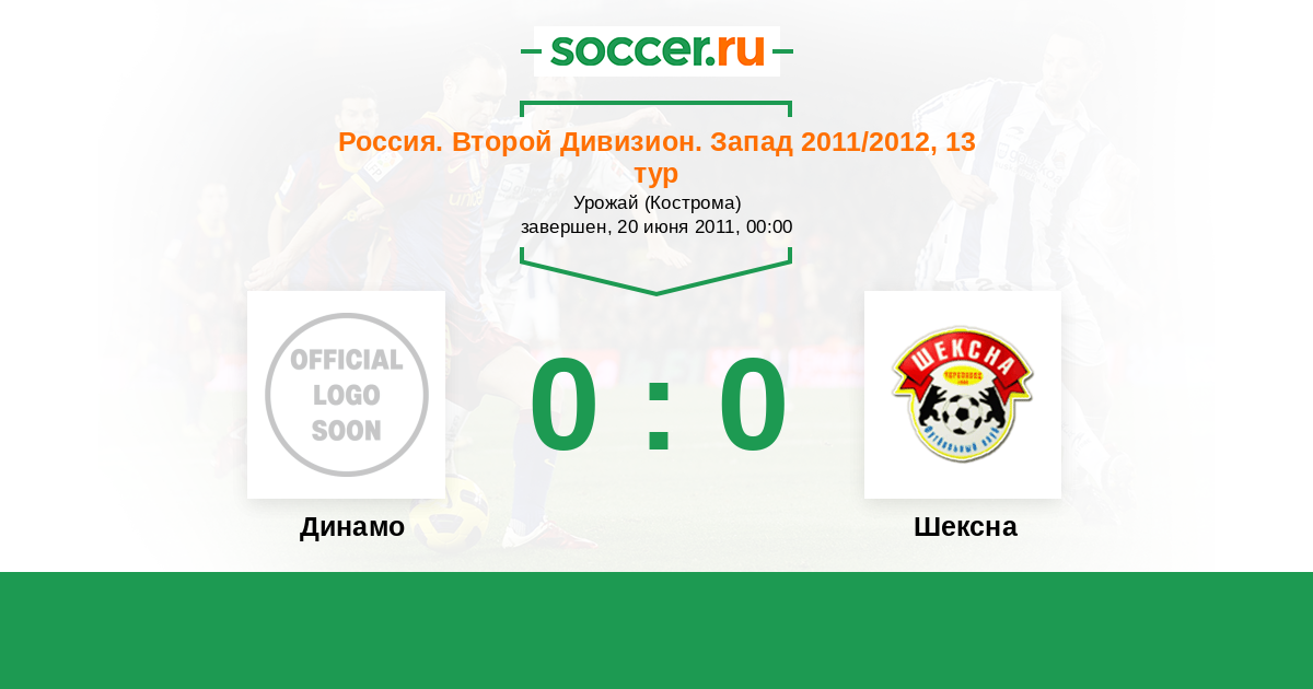 Россия. Вторая лига. Группа 2 17.09.2011 Шексна Логотип футбольный клуб Шексна (Череповец) 1:1 Логотип футбольный клуб Динамо (Кострома) Динамо
