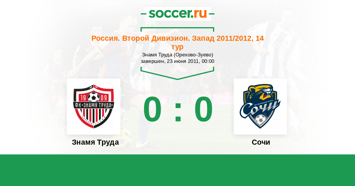 Россия. Вторая лига. Группа 2 25.05.2012 Знамя Труда Логотип футбольный клуб Знамя Труда (Орехово-Зуево) 0:2 Логотип футбольный клуб Петротрест (Сочи) Петротрест